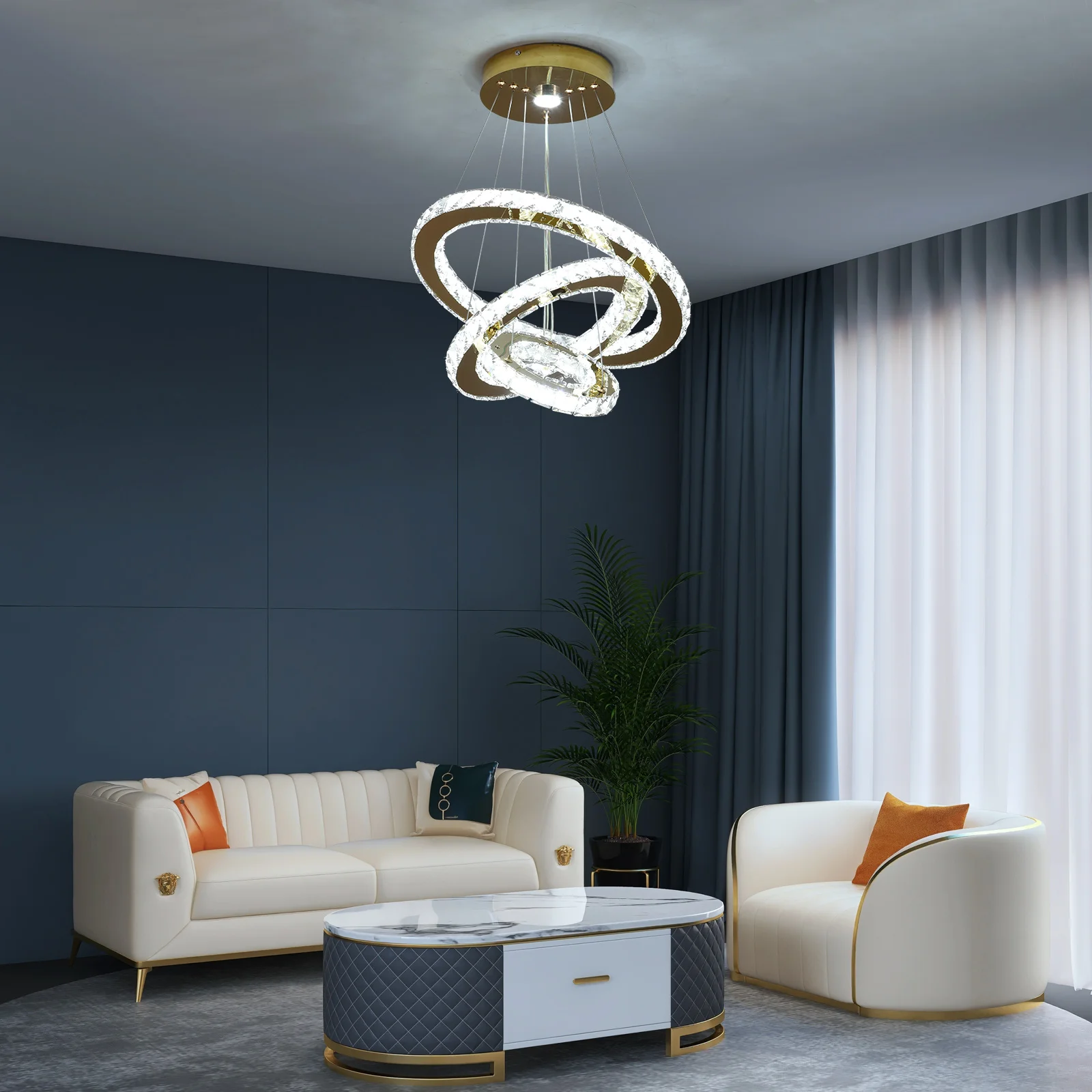 Be the first to review “3 Rings Led Living Room hang Lamp Modern Luxury Chandelier Geometric Interior Lighting” Cancel reply