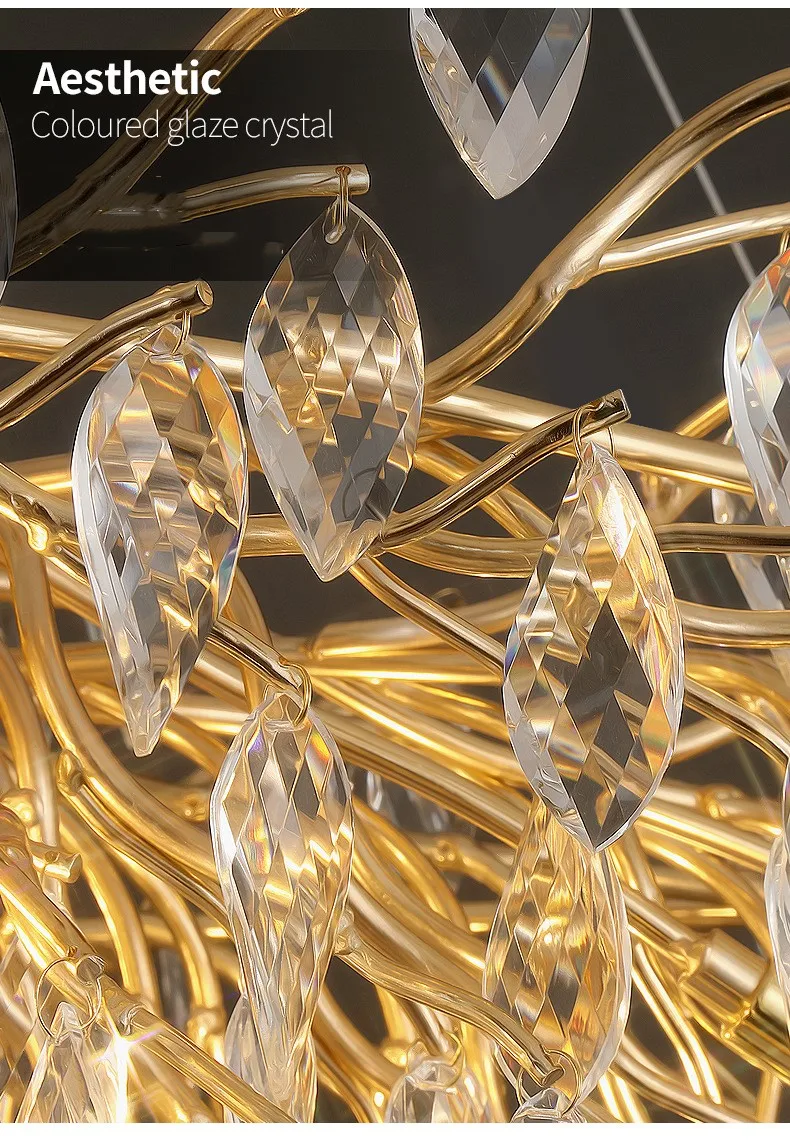 French Luxury Crystal Chandelier for Living Room Dining Room Bedroom Villa Staircase Aluminum Branch Chandelier for Hotels