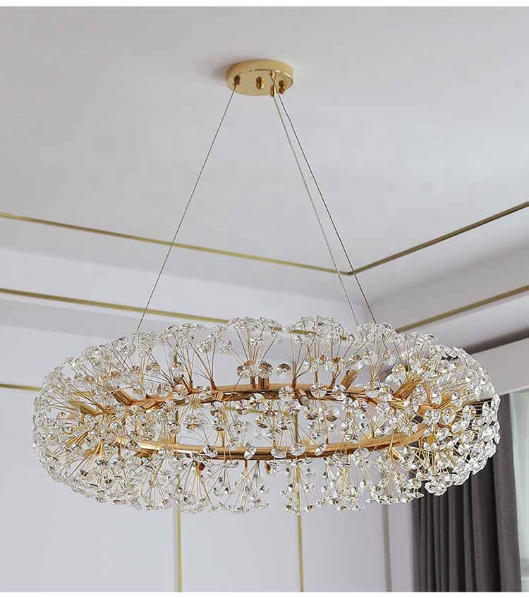Modern Firework Gold Crystal Chandelier Luxury Large Dandelion Chandelier Pendant Lighting